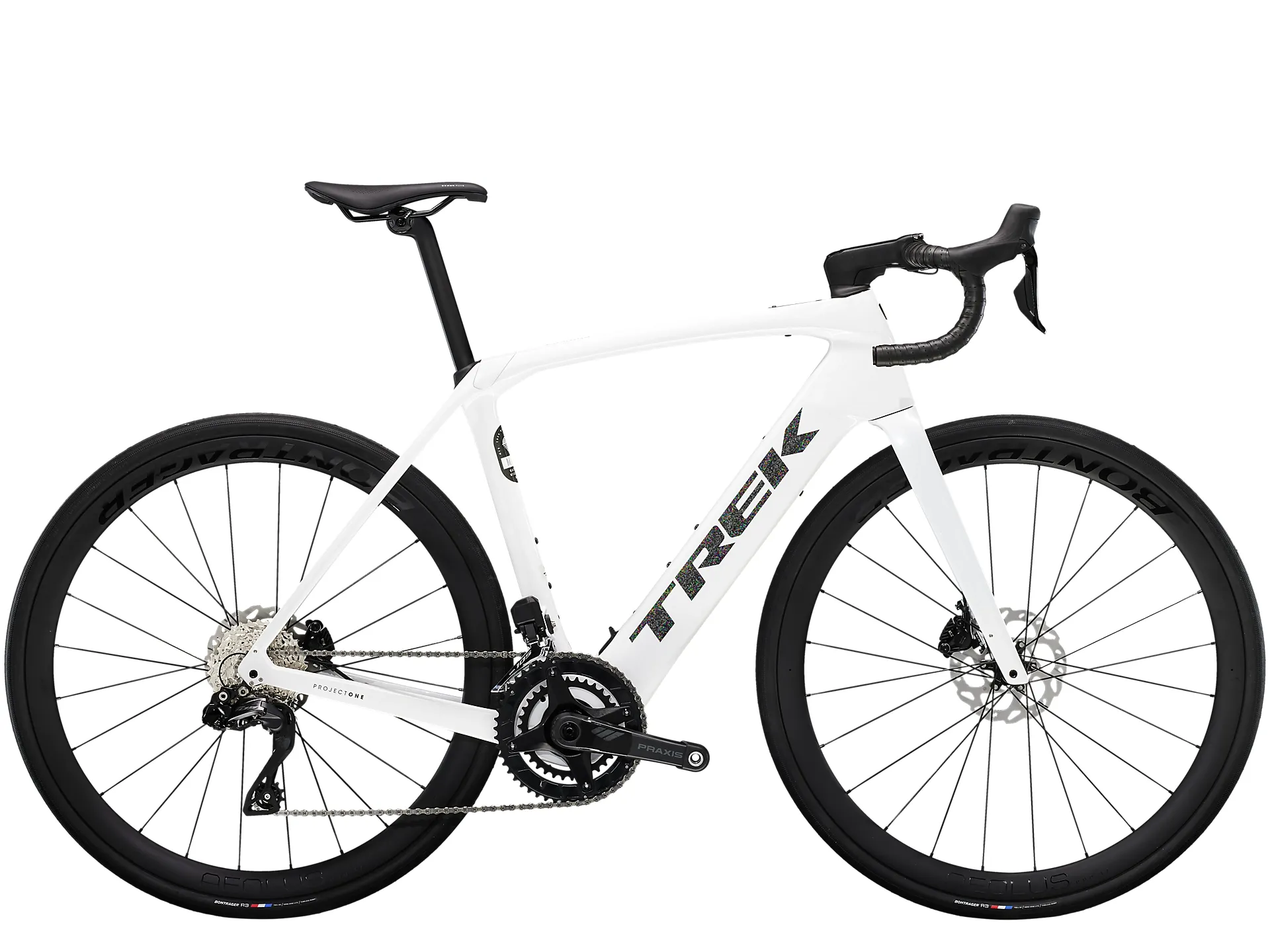 Das Domane+ SLR 9 ist ein bahnbrechendes E-Carbonrennrad, das sich in Sachen Aussehen, Passform und Fahrgefühl klar vom Rest absetzt. Der Rahmen aus 800 Series OCLV Carbon wird von einem kompakten, kultivierten Motor mit natürlicher Unterstützung angetrieben. Der unaufdringliche Motor sorgt auf herausfordernden Anstiegen und langen, epischen Abenteuern für zusätzliche Power und hält sich auf Solo- und Vereinsausfahrten für eine ungetrübte Rennraderfahrung dezent zurück. Und als Tüpfelchen auf dem i kommt es mit den hochwertigsten Komponenten, wie etwa der RED eTap AXS, SRAMs bester drahtloser, elektronischer Schaltung.